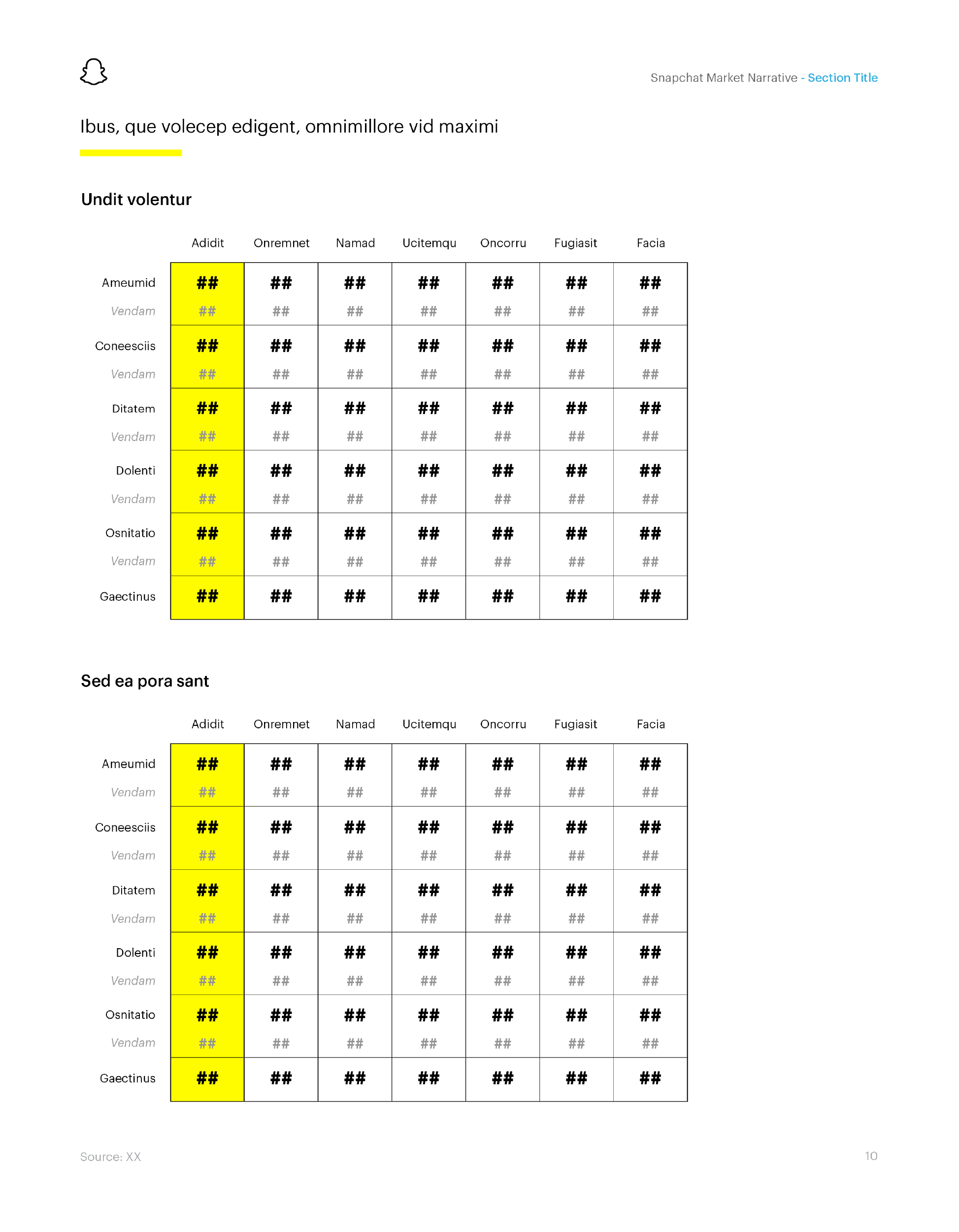 Snapchat wanted to create a playbook for understanding and connecting with their target audiences to share across internal marketing teams. They gathered a large amount of qualitative and quantitive data and challenged us to turn it into an easily understood narrative in the form of a PDF. I developed the look and feel, designed the 45 page report, and facilitated the translation of the design across 15 markets. The design utilizes various brand elements including photography and doodles, and the samples below feature placeholder text.